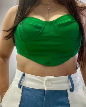 A visually striking pair of pants with a two-tone design in white and light denim blue that flatters and elongates the figure thanks to its vertical wave cut. This high-waisted piece with a front closure blends urban style with graphic art—perfect for those who love a modern, creative, and bold look.